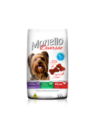 BiscoitoOs biscoitos crocantes Monello Diversão foram especialmente desenvolvidos para deixar o dia-a-dia do seu cão mais divertido. Com sabor irresistível de bacon, eles combatem o tártaro, deixando os dentes do seu pet mais limpos e saudáveis. Além de serem irresistíveis aos paladares caninos, os biscoitos Monello Diversão são vitaminados e podem ser utilizados como snack ou como alimento completo. Divirta-se com seu amigo!